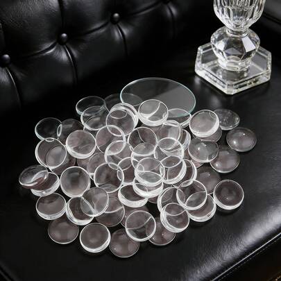 每批50颗透明玻璃凸面宝石,直径6-18毫米,圆形平底透明玻璃凸面宝石,适用于DIY珠宝制作材料和配件 - 珠宝图案 - 白色 - 查看 1
