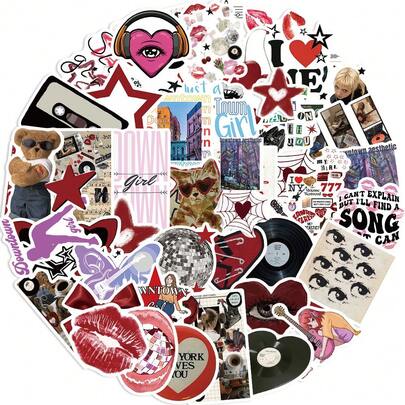 50张情人节贴纸,粉色爱心,行李箱、摩托车行李箱、笔记本电脑贴纸,均有售。 - 彩色 - 查看 1