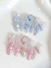 新年美甲套装。秋冬美甲。甜美梦幻的仙女风。十片装长款水滴形按压式假指甲。蓝色和粉色系,搭配闪耀的银色亮片、手绘烟花、五角星、蝴蝶结,以及手绘可爱的蓝粉色蛇。优雅甜美,精致细腻