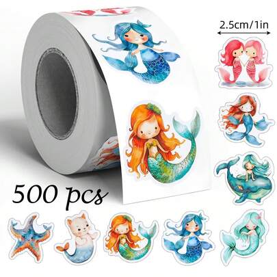 500张/卷 美人鱼贴纸,8种设计,海洋美人鱼贴纸,奖励贴纸,适用于教师、家长、学校、学习、手工制作,无粘性标签,返校装饰,励志贴纸,礼品用品,文具贴纸,美观的剪贴簿用品,贴纸簿,趣味贴纸剪贴簿