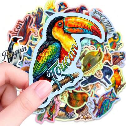 50张彩色鸟类贴纸,包括巨嘴鸟、企鹅、老鹰和鹦鹉等图案,防水乙烯基材质,野生动物自然主题,美观实用,可用于水瓶、笔记本电脑、滑板、日记本、手机壳等。适合成人、动物爱好者、DIY手工、剪贴簿、派对礼品和房间装饰。