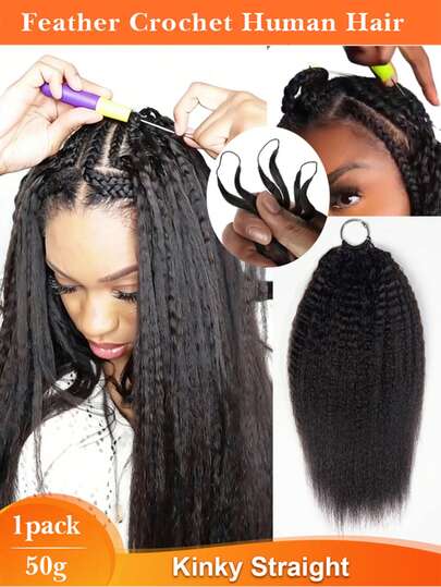 50克/包 第三代无结羽毛纹理原生雷米人发接发,自然黑色羽毛编织接发,适合无结波西米亚辫子等保护性发型 - Natural Black - 查看 8