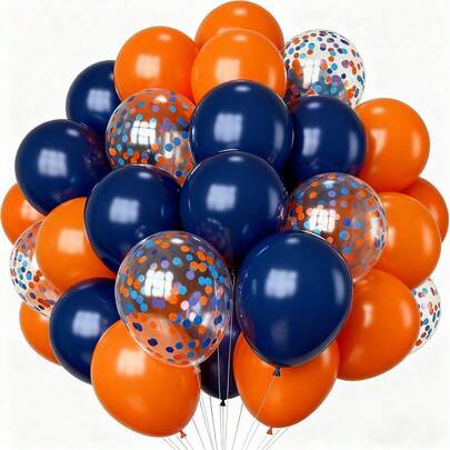 50个10英寸/25.4厘米多色派对气球,海军蓝、哑光橙、红蓝亮片气球,适合户外场景、庆典装饰,是生日派对、迎婴派对、婚礼、主题派对、性别揭晓派对、鸡尾酒会、周年纪念、节日活动的完美之选。 - 橘藍色 - 查看 4