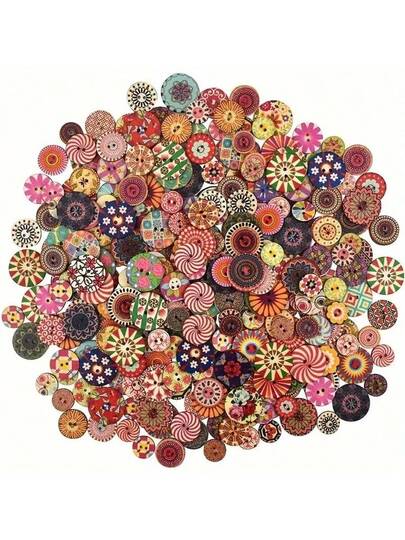 50 件 15 毫米和 20 毫米混色光滑复古木质纽扣,2 孔扁平木质纽扣,适用于 DIY 缝纫工艺品装饰或笔记本木制工艺品 - 彩色 - 查看 7