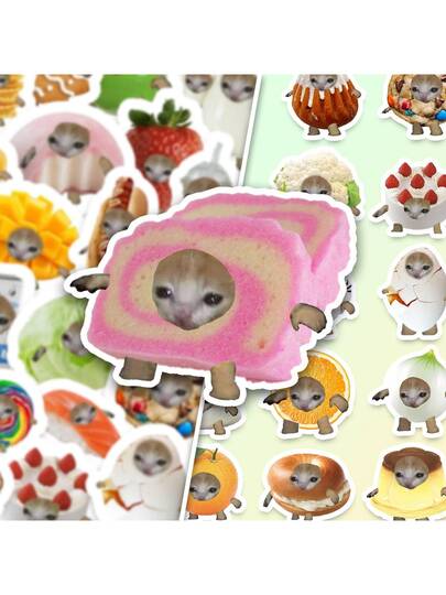 50 件有趣的猫头贴纸 - 防水乙烯基贴花,适用于笔记本电脑、水瓶、笔记本、行李箱等 - 可爱美观的 DIY 剪贴簿装饰 - 彩色 - 查看 6