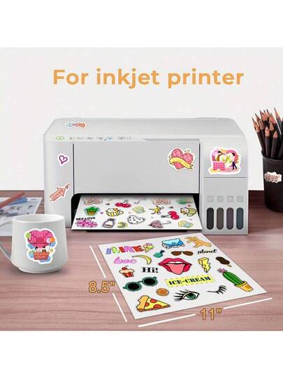 50张A4尺寸可打印自粘贴纸,适用于手工制作、剪贴簿、喷墨打印机,哑光白,返校季、圣诞节贴纸 - 彩色 - 查看 8