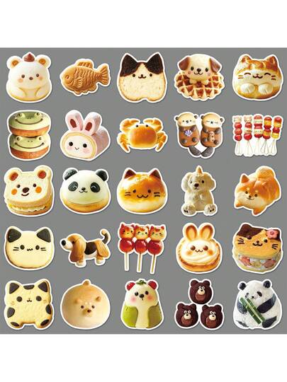 50张动物造型食物贴纸,可用于饼干、面包、可爱食物装饰、剪贴簿、杯子等。 - 彩色 - 查看 5