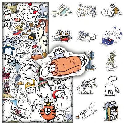 50张卡通西蒙猫可爱贴纸,趣味装饰贴纸,可用于笔记本、镜子等。