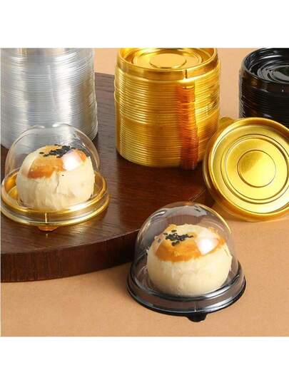 50个透明迷你蛋糕盒带盖圆形纸杯蛋糕托塑料蛋黄泡芙容器月饼圆顶盒烘焙包装盒厨房烘焙工具厨房用品 - 彩色 - 查看 10