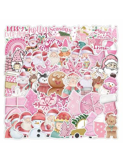 50 张可爱粉色圣诞装饰贴纸,适用于汽车、手机、电脑、吉他、笔记本、计划器 - TQ50-0376 - 查看 1