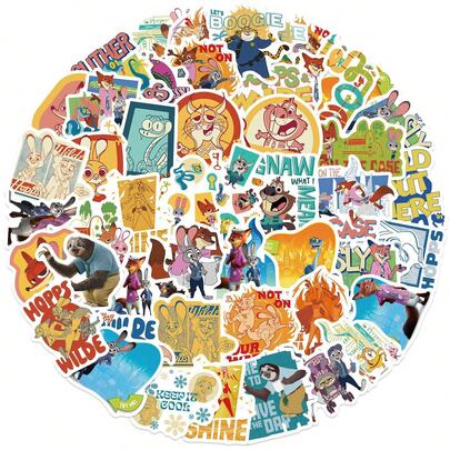 50张迪士尼《疯狂动物城2》贴纸,“疯狂动物城”主题派对礼品,尼克和朱迪卡通贴纸,防水贴纸,适用于书籍、日记本、手机壳、笔记本电脑、平板电脑、水瓶,适合作为节日、生日礼物或奖励,礼品装饰 - 彩色 - 查看 5