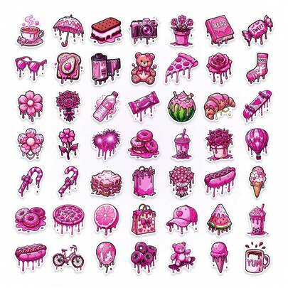50张全新可爱融化爱心卡通贴纸,防水装饰贴纸,适用于日记本