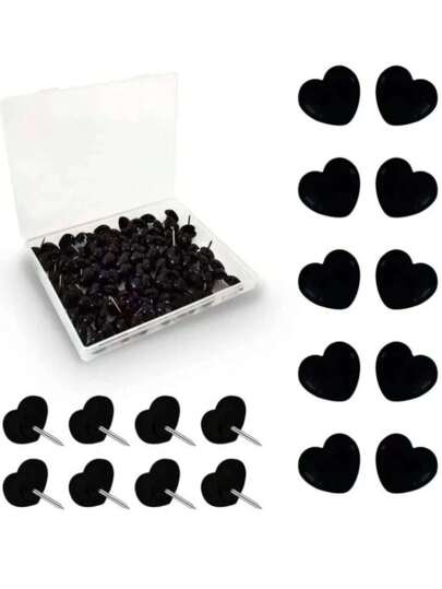 50 件装塑料爱心图钉形状钉装订板墙钉海报照片等,返校,学校用品 - 黑色 - 查看 1