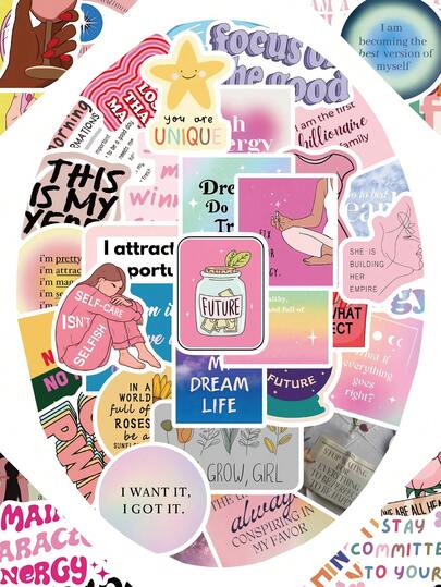 50张/套趣味卡通女性力量励志贴纸,装饰贴纸,适用于行李箱、笔记本电脑、吉他、手机、文具等 - 1 Set - 查看 10
