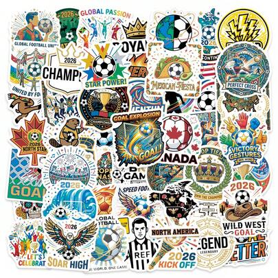 50张足球迷贴纸 - 防水乙烯基材质,色彩鲜艳的比赛和奖杯图案,适用于笔记本电脑、水瓶、行李箱和记事本,是体育爱好者的理想之选,可为个人物品增添活力和团队精神,并为比赛日或体育赛事打造主题DIY装饰。 - 彩色 - 查看 10