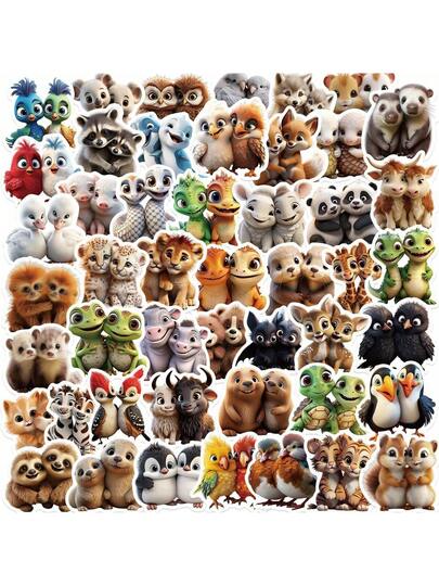 55张趣味双动物系列卡通涂鸦贴纸,适用于DIY手册、行李箱、头盔、桌面、马克杯、笔记本等。