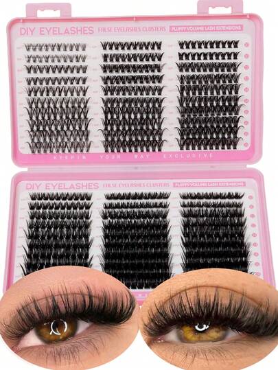 570/60片浓密蓬松假睫毛,0.07毫米D型卷翘,30D-100D/10-18毫米混合长度,仿貂毛单根假睫毛,自然柔软,适合任何妆容。睫毛簇,单根假睫毛,假睫毛