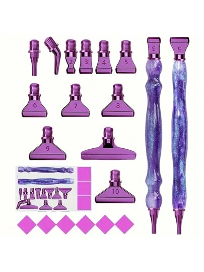 5D 钻石画笔套装带多功能紫色金属笔尖 - 树脂工艺工具套件用于美甲和十字绣装饰钻石画套件配件钻石画套件工具 - 彩色 - 查看 13