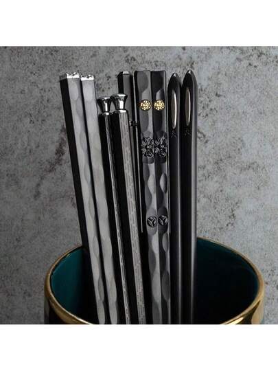 5Pairs Reusable Durable Sushi Chopsticks Chopstick Alloy Chinese Chopstick Plastic Chopstick Kitchen Tableware Set(5 Pairs Black MixC) - 黑色 - 查看 5