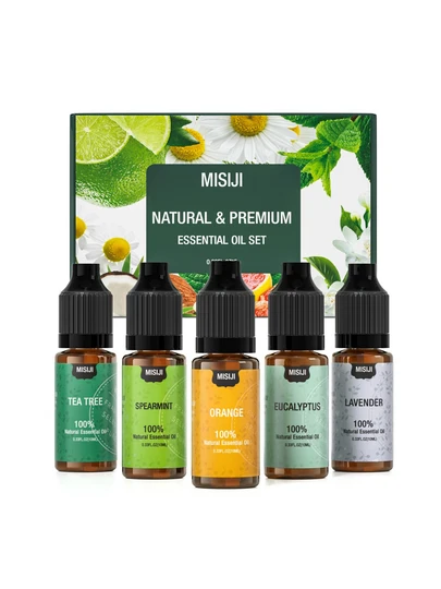 5 件套芳香疗法精油套装,留兰香、橙子、桉树、薰衣草、茶树香味,家庭芳香疗法精油、扩散器和家居香水、蜡烛和肥皂制作、沐浴产品和放松、身体护理、头发护理、按摩,送给朋友、女儿、妈妈和家人的最佳礼物 - 自然 - 查看 5