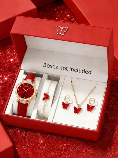 5件套女士手表,时尚、华丽、精致的圆形石英表,搭配蝴蝶项链、手链和耳环套装,适合女性日常佩戴、生日/节日礼物、派对装饰、返校节、馈赠亲友,也是情人节送给女性的理想礼物。 - 彩色 - 查看 1