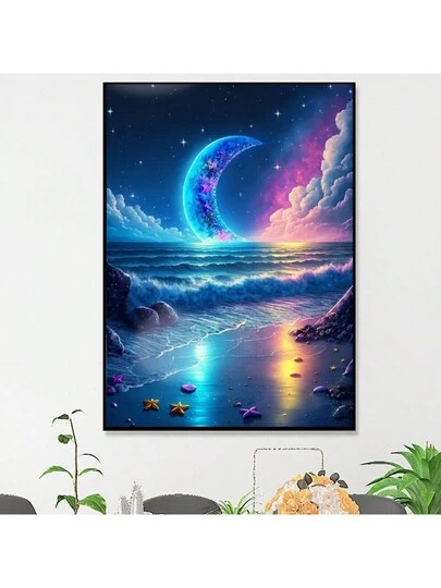 5d Diy 鑽石畫圓形鑽石海邊風景裝飾藝術品無框家居禮物 - 彩色 - 查看 3