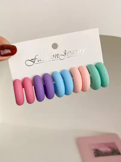 5對極簡風格開口耳環 - 彩色 - 查看 1