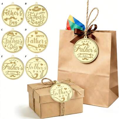 5个/10个金色亚克力圆形父亲节礼物标签,带胡须/帽子/蝴蝶结装饰,适用于父亲节礼物包装和派对回礼