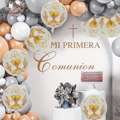 5个18英寸白色铝箔圆形气球,适用于初领圣餐、洗礼装饰,室内外派对装饰