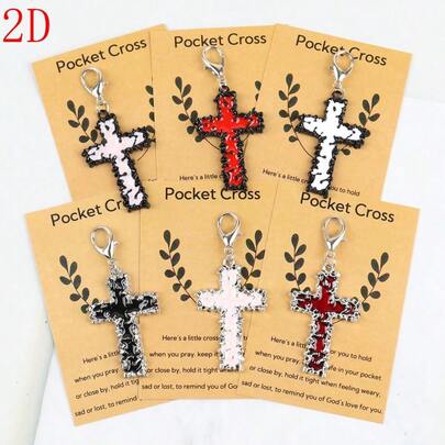 5个/6个装时尚十字架造型钥匙扣吊坠 - 适合钱包、背包装饰、日常使用,经久耐用,是理想的礼物
