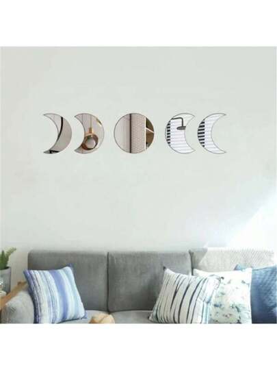5入組亞克力月亮和圓形組合鏡面裝飾貼紙 - 銀色 - 查看 5