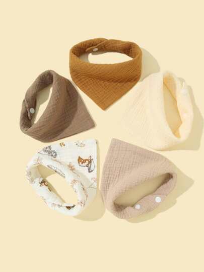 5入組嬰兒素色和蘑菇圖案圍兜 - 彩色 - 查看 1