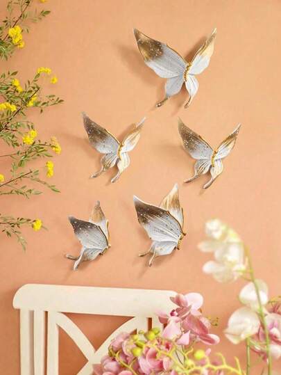 5件套蝴蝶舞动墙饰创意墙饰DIY吊坠墙贴3D墙饰蝴蝶秋季房间装饰圣诞装饰卧室装饰