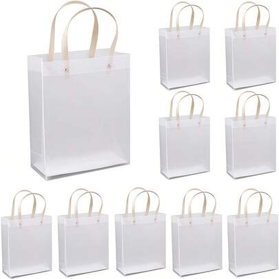 5个优雅磨砂PVC礼品袋,透明塑料礼品袋,耐用便携礼品手提袋,配有舒适提手,可重复使用购物袋 - 婚礼、新娘送礼会、单身派对和生日聚会的理想之选