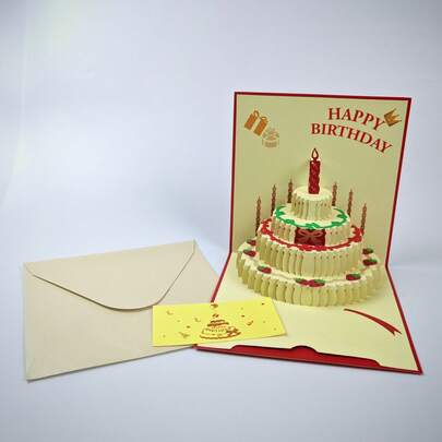 5张/包创意3D烫金生日蛋糕折叠贺卡 - 生日蛋糕立體賀卡 - 查看 1