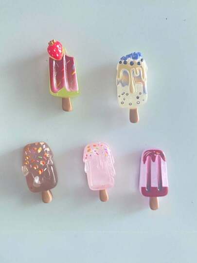 5件装冰箱贴水果冰淇淋冰棒草莓西瓜仿真食物玩家居装饰DIY磁贴 - 白色 - 查看 2