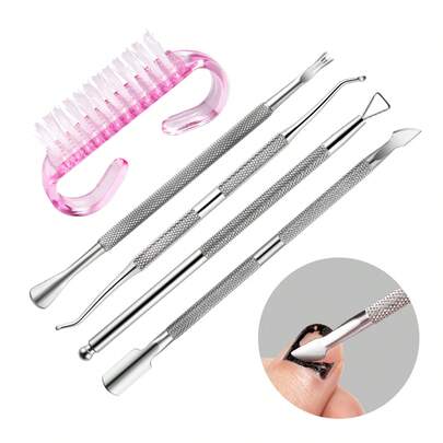 5件套指甲角质层推棒及清洁器套装,不锈钢双头指甲锉,卸甲水,指甲护理工具