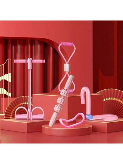 5入組/套瑜伽健身訓練器材套裝,包含圓形腿部按摩器、8字型拉繩、仰臥起坐助手、腳踏器和按摩球,適合雕塑身形、舒緩壓力和放鬆肌肉。 - 粉色 - 查看 10