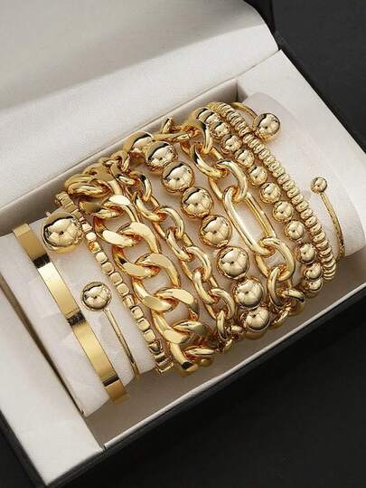 5件套简约时尚金属串珠手链及手镯套装,极简风格,适合女性、情侣、男女通用,休闲、派对、婚礼等场合佩戴,也是送给妈妈、朋友的礼物。
