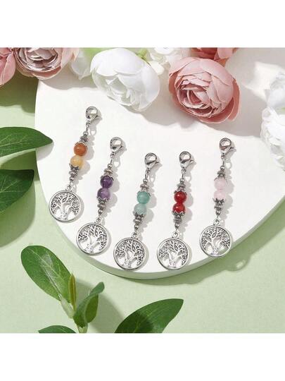 5 件/套合金生命之树与圆形天然宝石吊坠装饰,配 304 不锈钢龙虾爪扣,古银与铂金,60.5 毫米,可用作汽车钥匙包装饰 - 彩色 - 查看 1