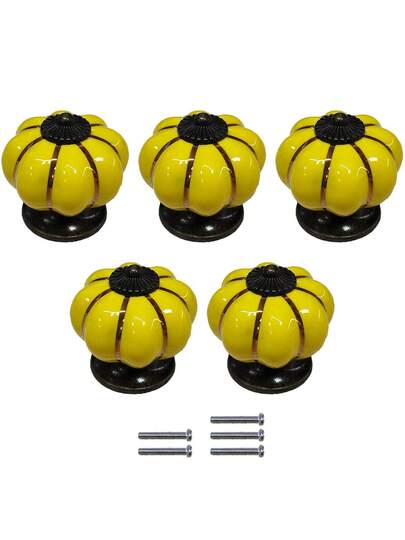 5入組/套鄉村風格卡通陶瓷南瓜形抽屜把手,適用於兒童房間,櫥櫃門的單手抽屜把手 - 黃色 - 查看 1