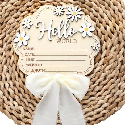 6.1英寸粉色蝴蝶结花朵婴儿出生公告牌,“你好,世界”新生儿公告板,个性化木质欢迎牌,医院婴儿室礼物,准妈妈礼物