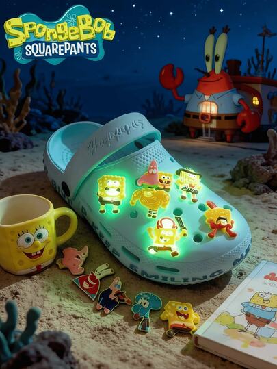 SpongeBob SquarePants 6/12/24件装海绵宝宝主题生日派对装饰品,可爱图案新奇夜光鞋饰套装,可在黑暗中发光,适用于沙滩包、木屐、凉鞋,PVC材质,可用作鞋子装饰、吊坠,生日、圣诞节、情人节、万圣节派对礼物,空心木屐悬挂装饰,空心木屐,空心木屐配件,随机款式软橡胶鞋饰,适合生日、节日礼物、礼品袋填充物和圣诞袜填充物。