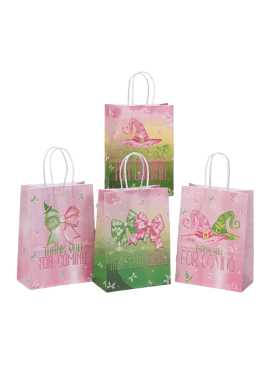 6/24 件女巫主题派对礼品牛皮纸袋、答谢礼品袋、感谢礼品袋、可重复使用礼品袋、女巫帽、蝴蝶结、感谢印花牛皮纸袋、派对礼品袋、婚礼袋、朋友礼品袋(生日、节日、圣诞节、万圣节、返校礼品包装袋)