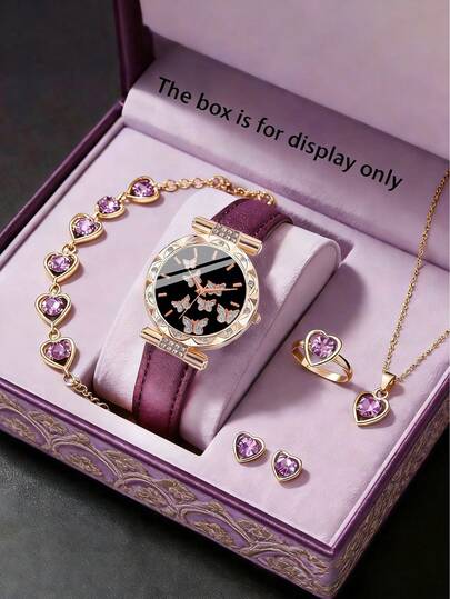6/5件套,优雅少女风,时尚靓丽,多蝴蝶图案表盘,精致石英表,适合女孩佩戴,可搭配水钻项链、手链、戒指和耳环套装。适合作为女孩的生日/节日礼物。也非常适合日常佩戴,例如圣诞礼物、返校季、派对等场合。毕业季、情人节、圣诞节——非常适合作为送给女孩的礼物。 - 彩色 - 查看 1