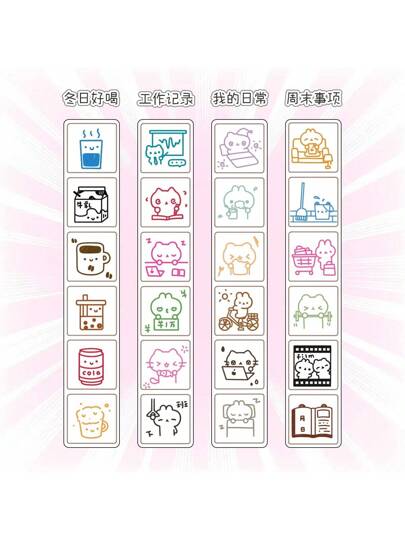 六合一可爱卡通印章套装,非常适合子弹日记、工作日程、日程安排、可爱印章配件 - 單件 - 查看 14
