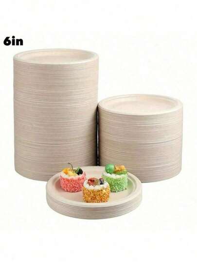 6英寸可堆肥纸盘,加厚一次性纸盘,圆形未漂白棕色纸盘,采用天然甘蔗纤维制成,适用于聚会、露营、野餐。
