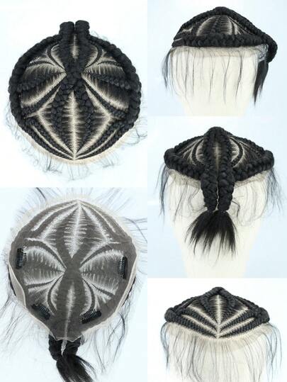 6英寸合成编织假发,独特蕾丝编织设计,平行方格编织,时尚商务发型,适合非洲男士,黑色 - 黑色 - 查看 1