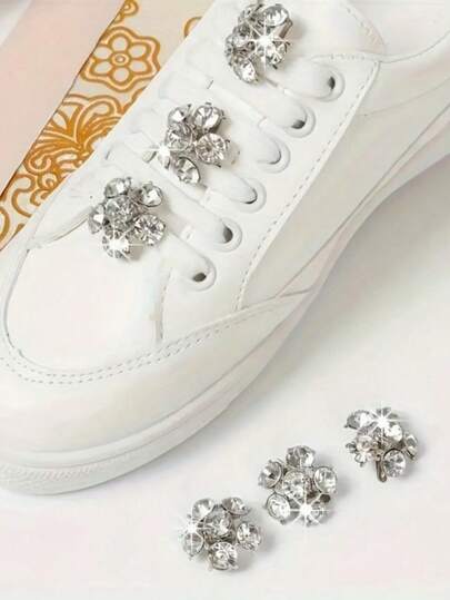 6 件装时尚金属鞋饰,闪亮水钻设计,锌合金材质,适用于运动鞋和帆布鞋的 DIY 配件,坚固的铁质材料,双件装,时尚鞋履装饰,适合日常和派对穿着 - 彩色 - 查看 4