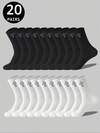 10双/20双装男童休闲袜,青少年中筒袜,白色袜子,冬季袜子,黑色袜子,防臭,运动,透气,吸湿排汗,两种款式可选,适合男童日常穿着
